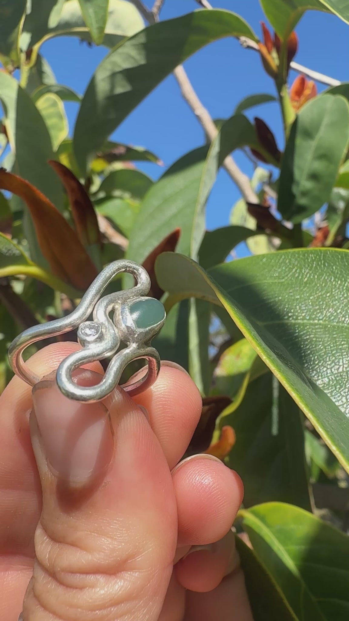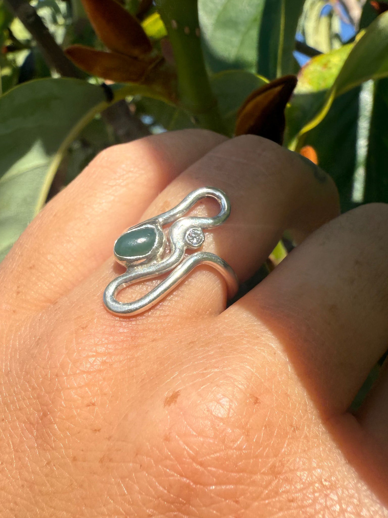 Big Sur Jade + diamond toi et moi wavy ring