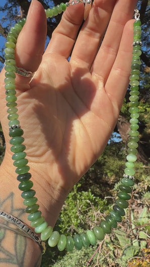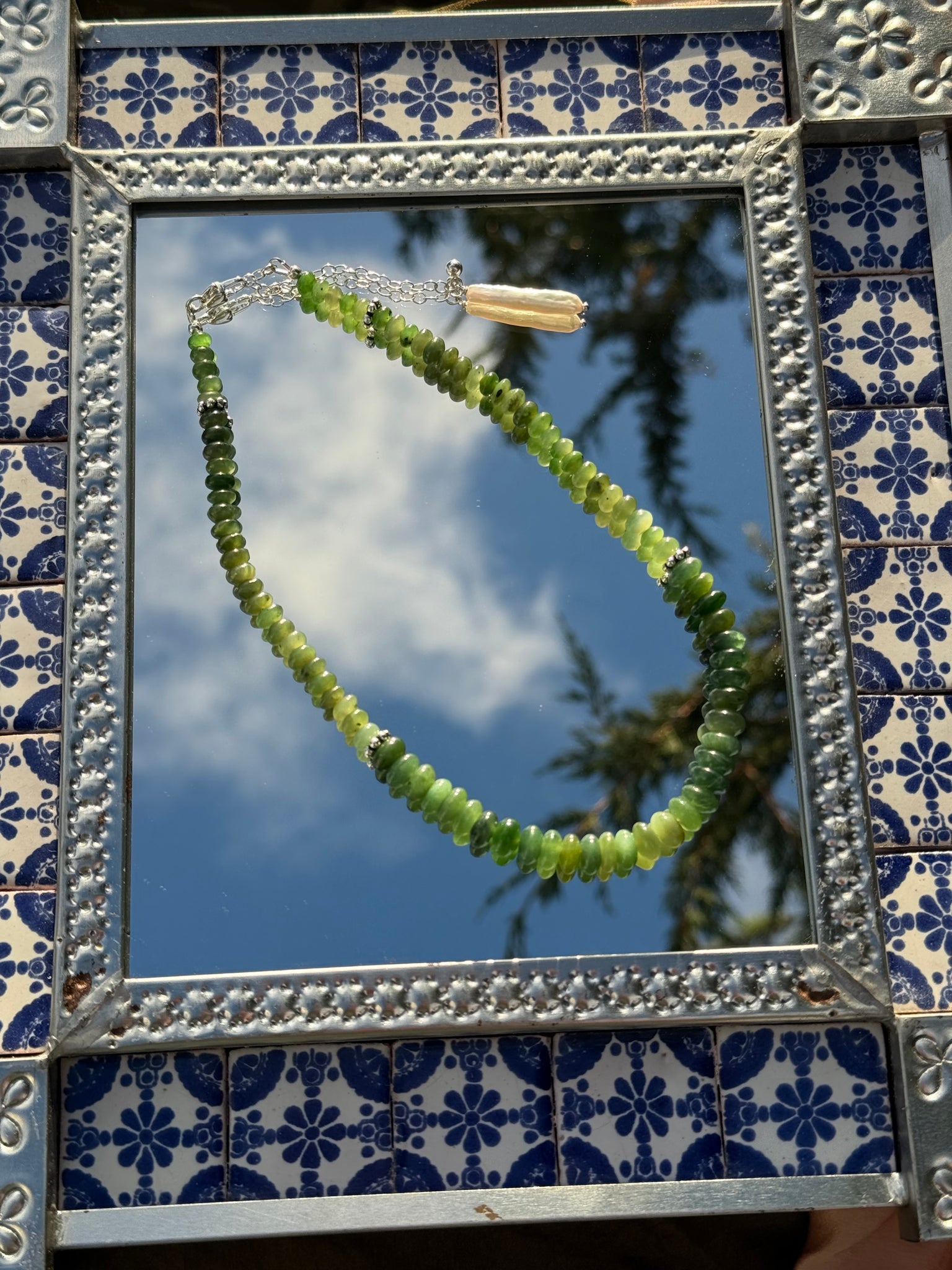 Siberian jade beads with sterling silver findings and a freshwater pearl